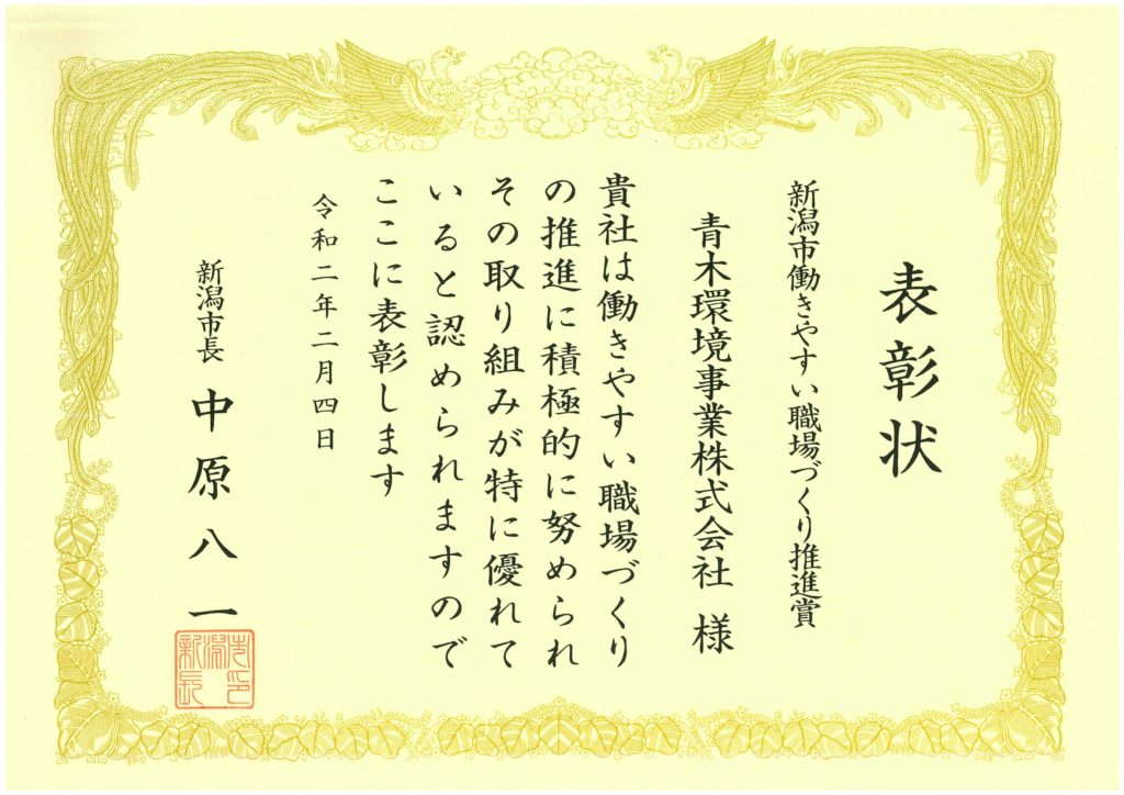 この度、新潟市働きやすい職場づくり推進賞を受賞しました。 この賞は、中小企業を対象に、誰もが働きやすい職場づくりに先駆的・特徴的な取り組みを行っている企業に対して与えられるものです。 弊社では、社員の声が直接社長に届くよ …