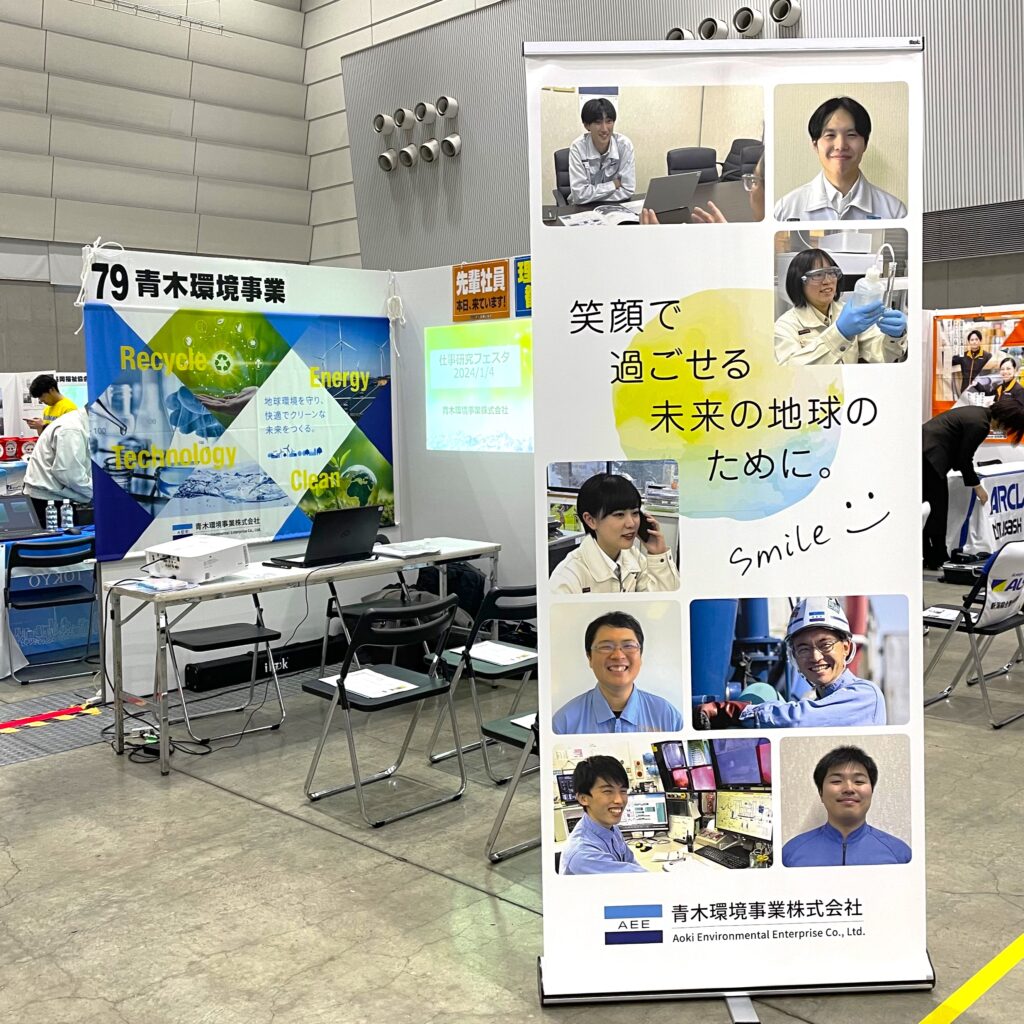 1月4日に㈱広報しえん主催の大学生、専門学生を対象とした就活イベント『仕事研究フェスタ』に参加しました。 環境分野について専門的に学んでいる学生だけでなく、当日ブースを見て当社に興味を持ってくれた学生など、たくさんの方に …